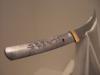高橋恒厳(1977-)は群馬県前橋市出身の刀鍛冶です。平成10年に上林恒平に入門、平成16年より新作名刀展に出品。平成22年に独立して故郷の群馬県赤城山麓の富士見町に鍛刀場を設けて、同じく群馬県出身の若き刀工工藤将成、石田國壽とともに「上州三羽烏」と称されて期待される刀鍛冶です。展示中の作品(名刀「三羽烏!?」)は独立前の平成18年に山形市長谷堂の「恒平鍛刀場」で鍛えられた作品です。